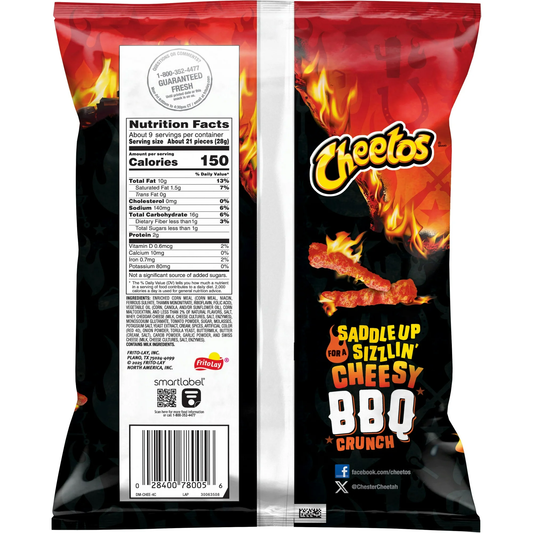 Cheetos Flamin' Hot Cheddar BBQ Snacks, 8.5 oz Bag