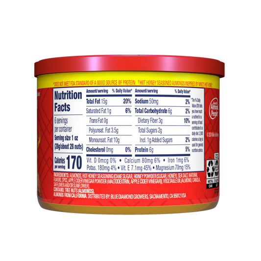 Blue Diamond Almond, Mikes Hot Honey Almonds Flavored Snack Nuts, 6 oz. Resealable Can