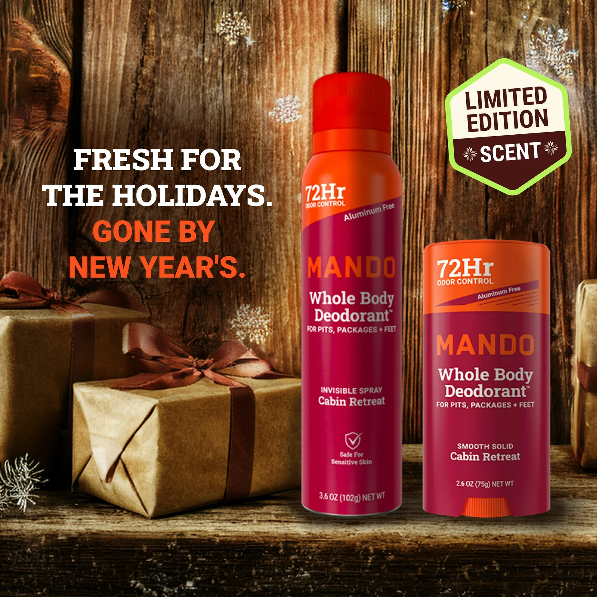 Mando Limited Edition Whole Body Deodorant Spray for Men, Aluminum Free, Cabin Retreat Scent, 3.6 oz