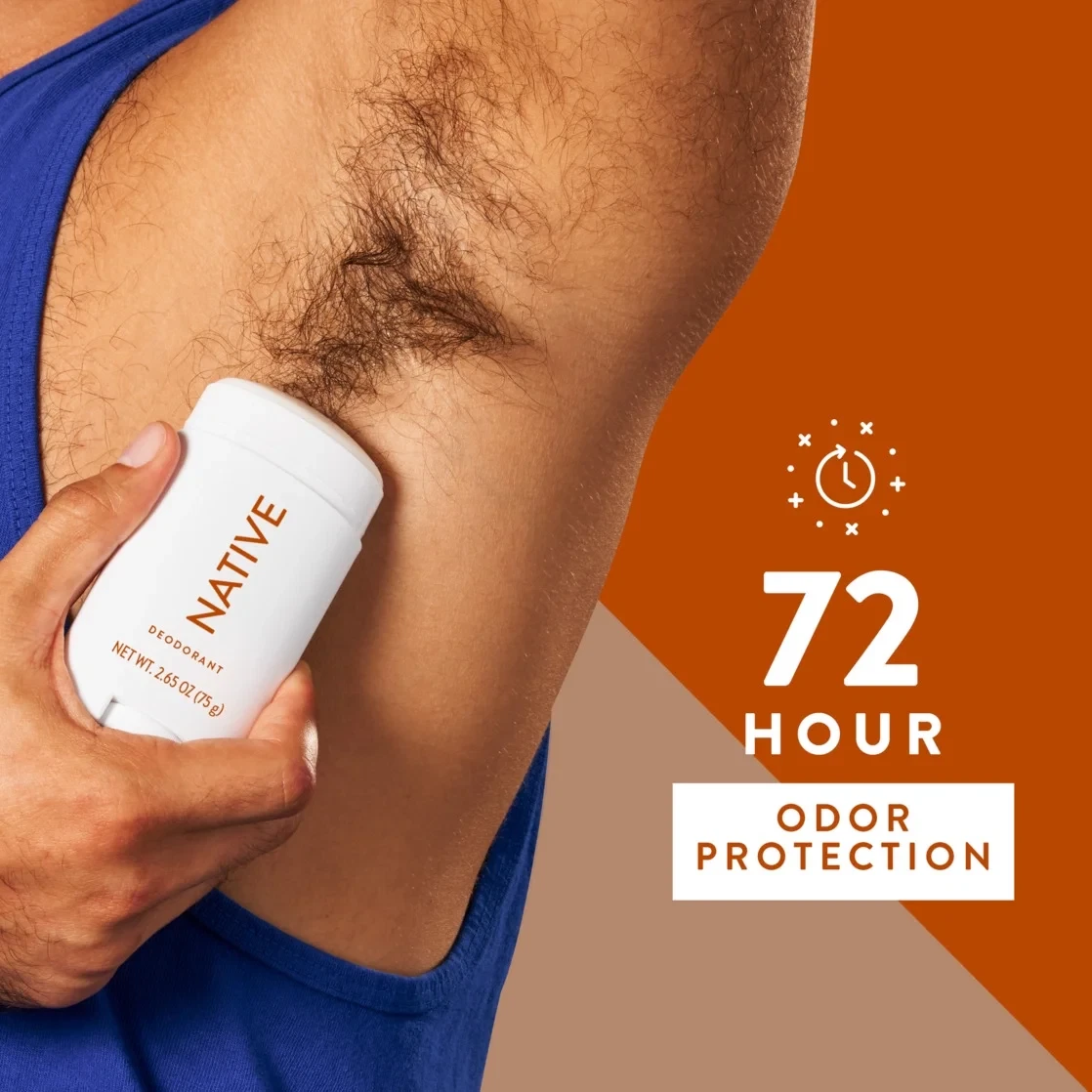 A couple swipes of this naturally derived Native Deodorant go a long way, delivering effective odor protection for up to 72 hours. Free of aluminum salts, parabens, and phthalates, this deodorant stick is thoughtfully made with less than 10 clean ingredients to fight unpleasant underarm smells, so you never have to worry. Native Deodorant includes baking soda to neutralize odors and shea butter for a smooth application. All of the ingredients work together to keep you smelling (and feeling) fresh. This clean deodorant isn't greasy or sticky, and feels dry when applying. Formulated for men and women, this award-winning formula is strong enough to work on anyone's pits, period.