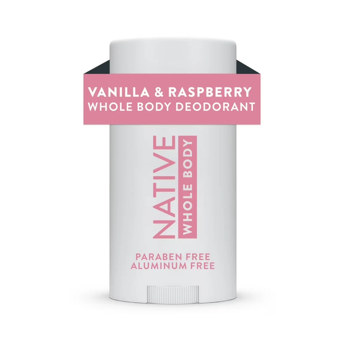 Native Deodorant, Aluminum Free, Sensitive Whole-Body Deodorant Vanilla & Raspberry Scent 2.4 oz