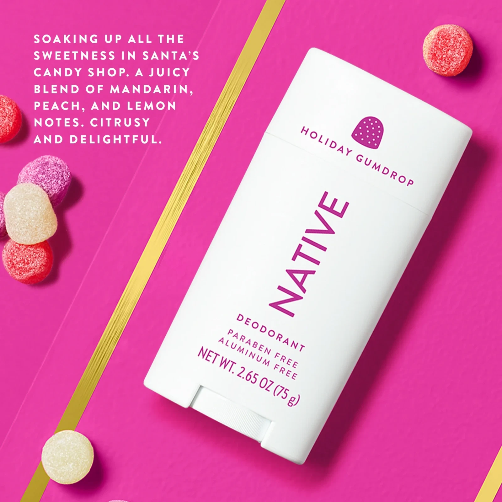 Native Limited Edition Holiday Gumdrop Deodorant for Women and Men, 2.6 oz
