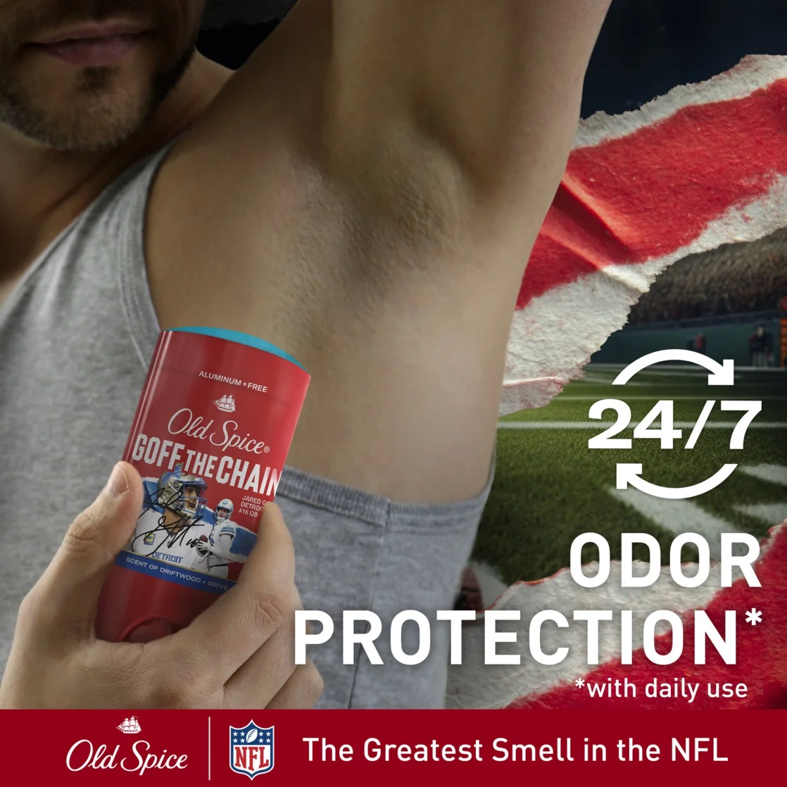 Old Spice Men's Aluminum Free Deodorant, NFL Collection, Goff the Chain, Driftwood + Drive, 3oz